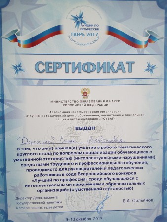Сертификат участника Всероссийского конкурса "Лучший по профессии"