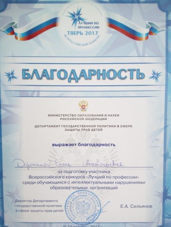 Благодарность участника Всероссийского конкурса "Лучший по профессии"